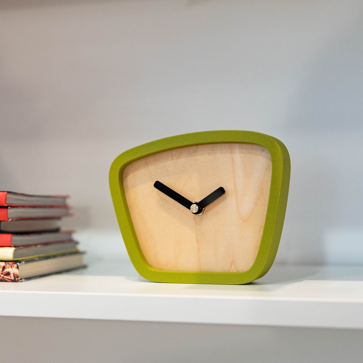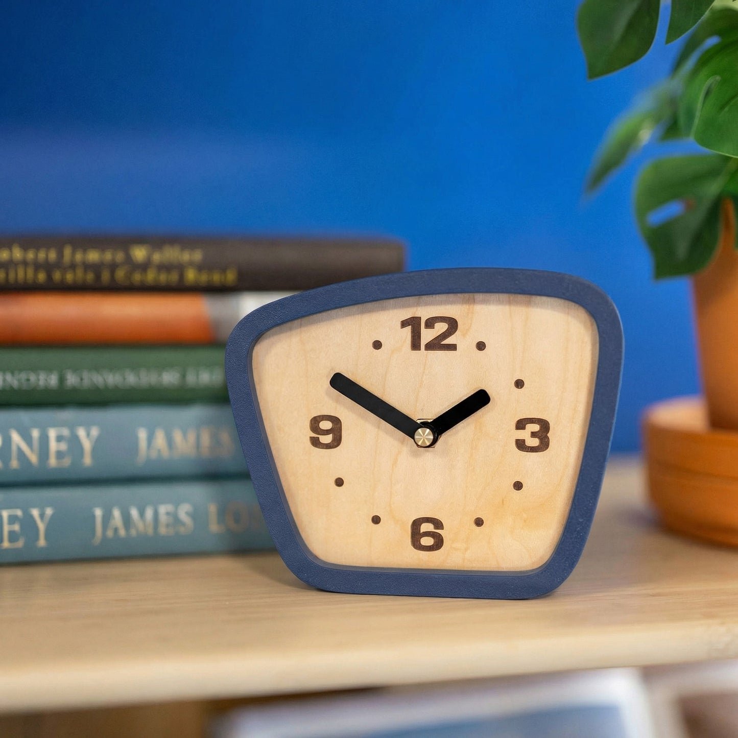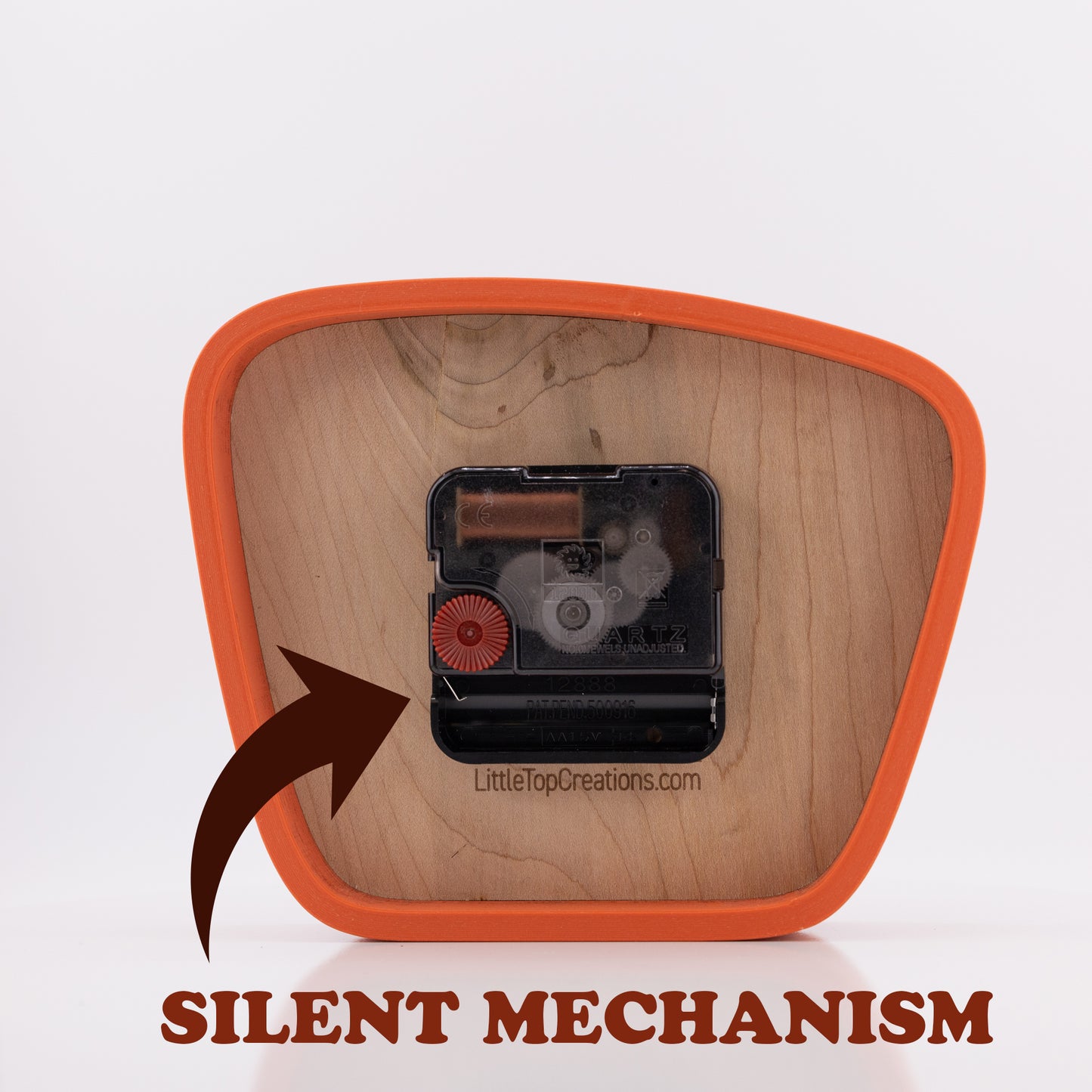 Add a touch of vintage flair with our handcrafted Mid Century Modern Clock. Its softly rounded silhouette and minimalist face make it a striking accent on your desk, shelf or bedside table without the tick-tock thanks to a silent sweep mechanism.